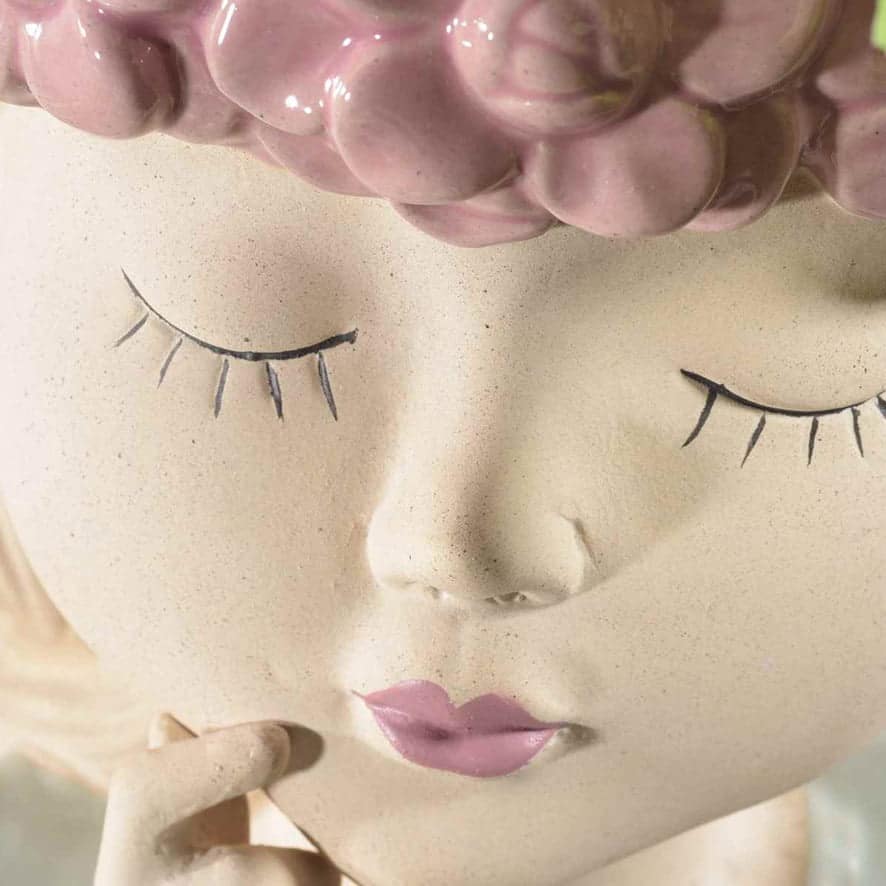 Vaso viso donna in porcellana opaca colorata con corona di fiori