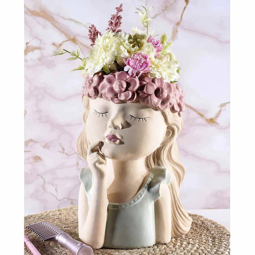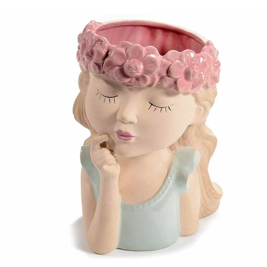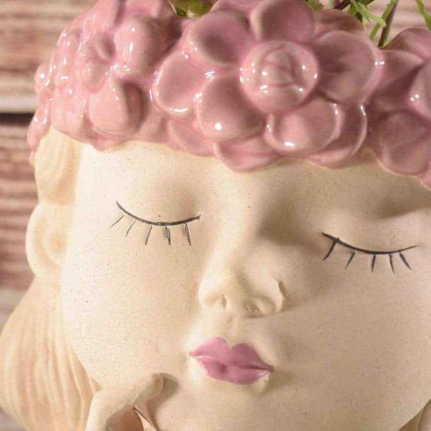 Vasi in porcellana opaca colorata viso di donna con corona di fiori