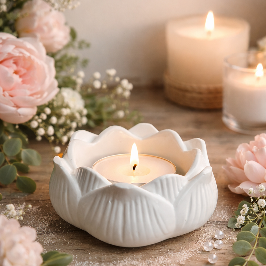 Portacandela Fior di Loto, in ceramica